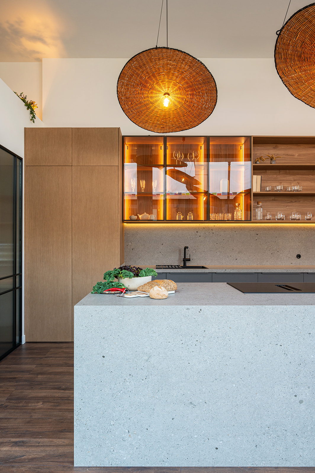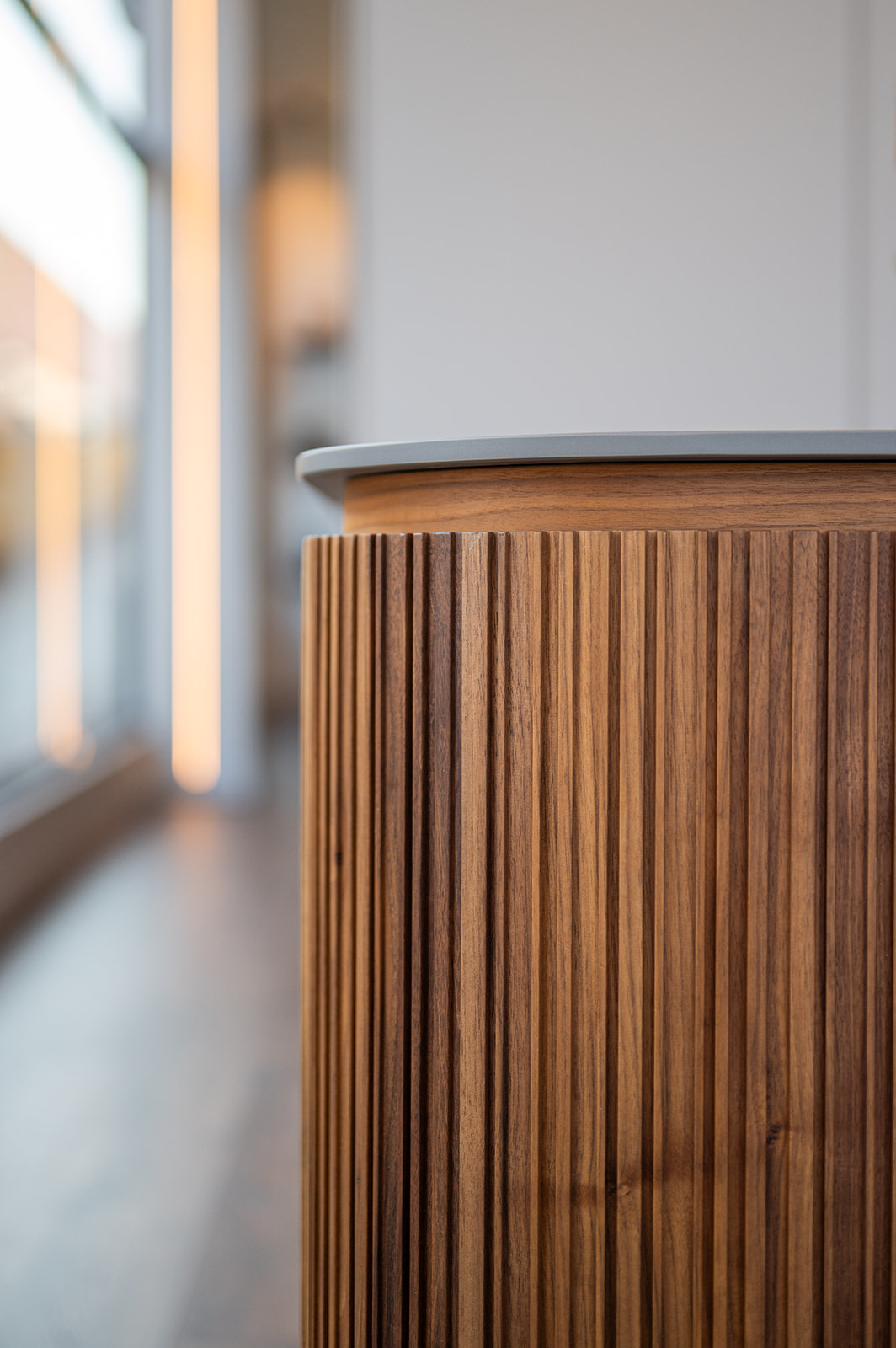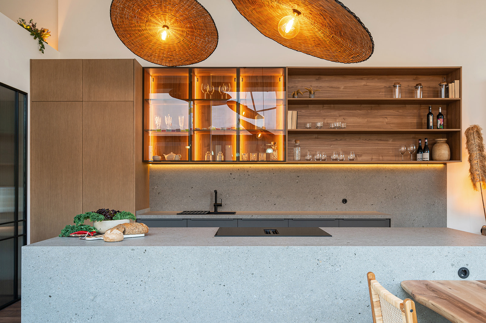 Los muebles de 4 metros de altura, la paleta de colores tan definida y la palillería asimétrica de nogal, son sus señas de identidad.