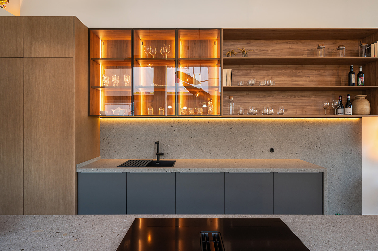 Este espacio rompe con los convencionalismos de estancias unifuncionales, convirtiéndose en una zona polivalente, para disfrutar en familia y amigos.